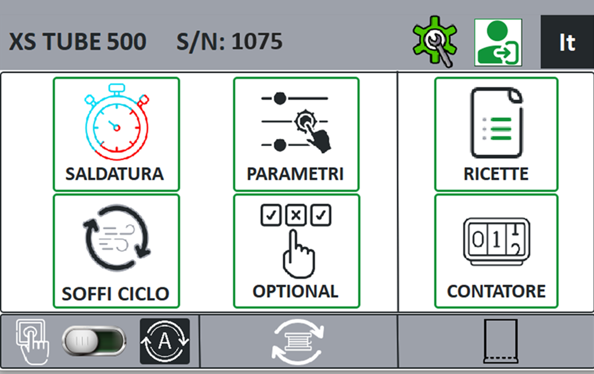 Interface graphique repensée avec menu basé sur des icônes, diagnostic et contrôle des fonctions de la machine, jusqu’à 500 recettes, jusqu’à 40 opérateurs (option), accès à distance (option).